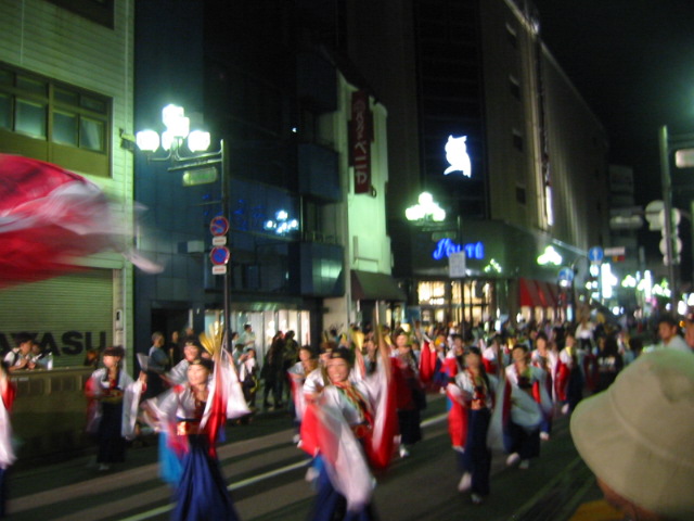 「おどるんや」は、1日も夜までお城の砂の丸や本町のフォルテワジマ前などで踊りの演舞が行われ、会場や沿道には多くの市民で賑わいました。