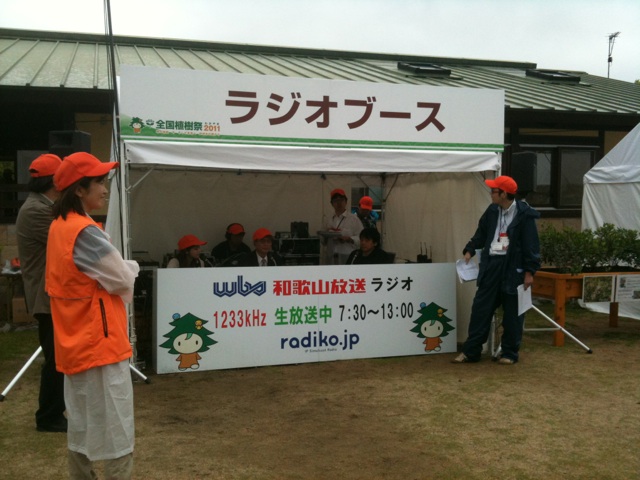 (和歌山放送ラジオでは、午前7時半から午後1時まで、植樹祭特別番組「緑の神話 今 そして未来へ 紀州木の国から」を、会場の新庄総合公園の特設スタジオから生放送しました)